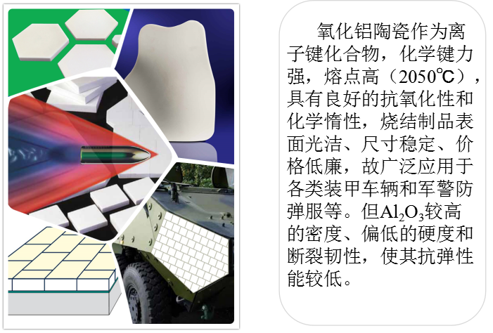 陶瓷材料擁有許多極具吸引力的性能,包括高比剛度、高比強(qiáng)度和在許多環(huán)境下的化學(xué)惰性。同時(shí),因其相對于金屬的低密度、高硬度和高抗壓強(qiáng)度,使其在裝甲系統(tǒng)上的應(yīng)用十分具有吸引力,己成為一種廣泛應(yīng)用于防彈衣、車輛和飛機(jī)等裝備的防護(hù)裝甲。