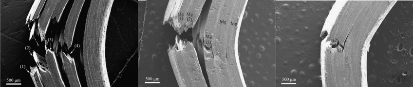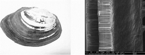 隨著科學技術的發(fā)展和進步,對材料的性能要求也越來越高,傳統(tǒng)材料由于結構單一,綜合性能不夠突出,難以滿足對多性能耦合要求的服役環(huán)境。但是由多種不同性能的材料通過物理或者化學方法結合制備而成的復合材料,既能保持各組元材料獨特的性能,也能取長補短,產(chǎn)生協(xié)同效應,使新制備的復合材料綜合性能遠優(yōu)于各組員材料的性能,從而滿足不同復雜工況的要求。自然界中也有很多類似的結構,軟/硬相結合的多層結構可以提高其強度硬度的同時也能有很好的韌性。下圖為貝類外殼的層狀結構。